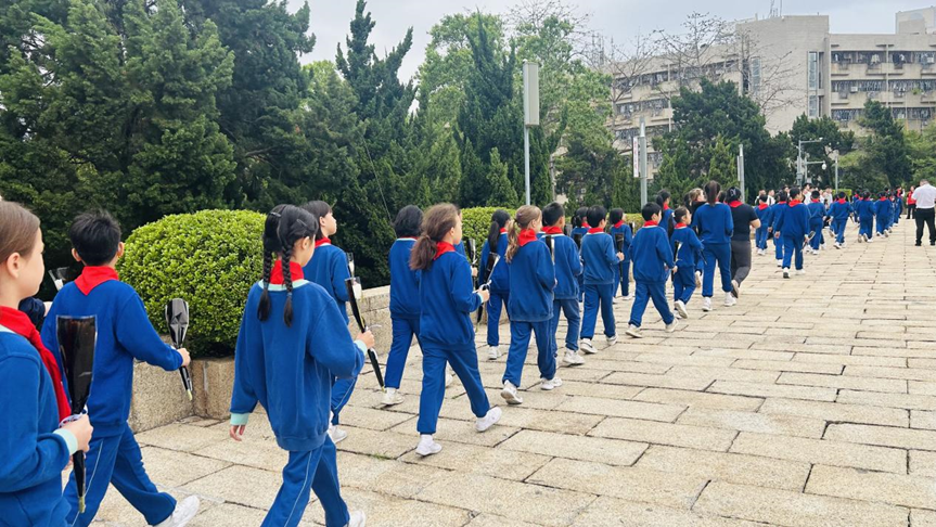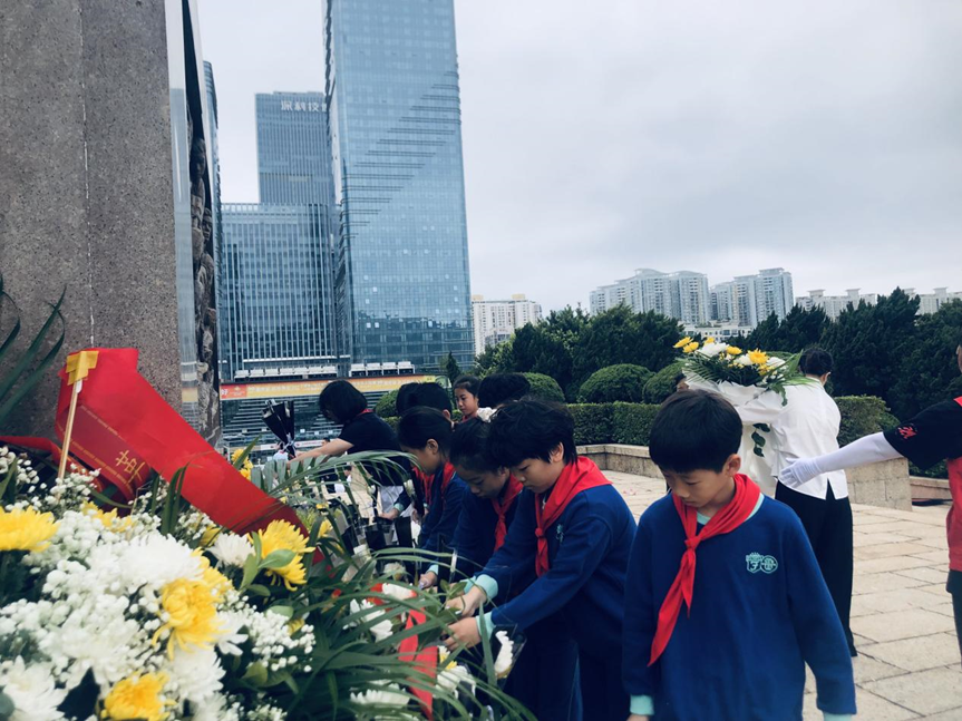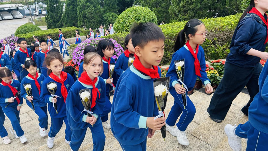 The pines and cypresses are green to express sorrow, and during the Qingming Festival, we offer sacrifices to the souls of heroes. In order to commemorate the revolutionary martyrs, inherit the patriotic values rooted in revolutionary legacy, on 2nd April , all the Chinese Young Pioneers of P4 in our school went to the Shenzhen Martyrs Cemetery with great reverence to carry out the theme education activity of "Remembering the Revolutionary Martyrs and Inheriting the patriotic values " Qingming Festival Sweeping Theme Activity, in a solemn atmosphere, dialogue with the heroes, and pay tribute to the martyrs.